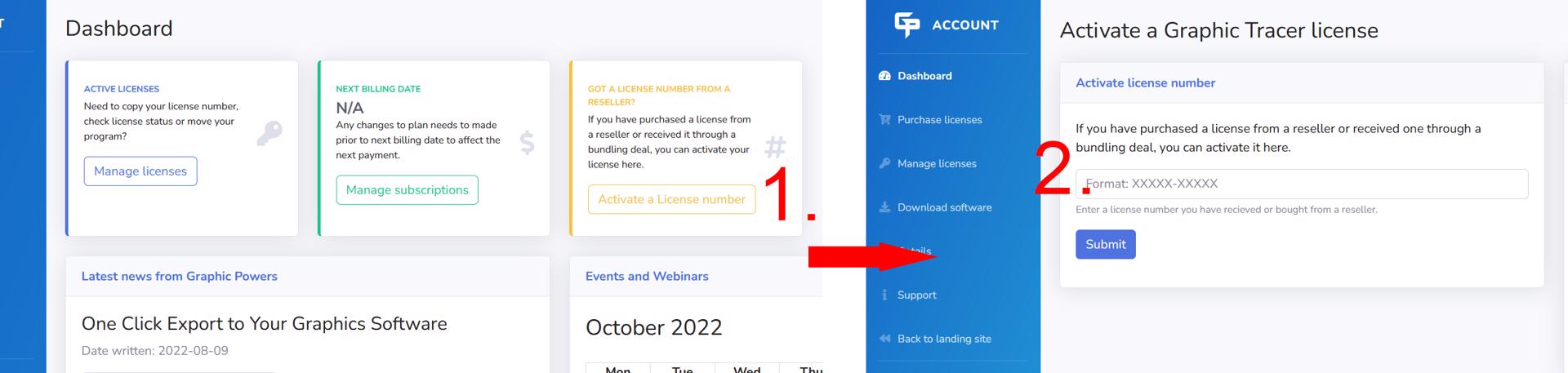 When you have purchased a license from a reseller, you need to connect the license to your Graphic Powers account. (If you don't have an account, you need to sign up for one. Sign up here).