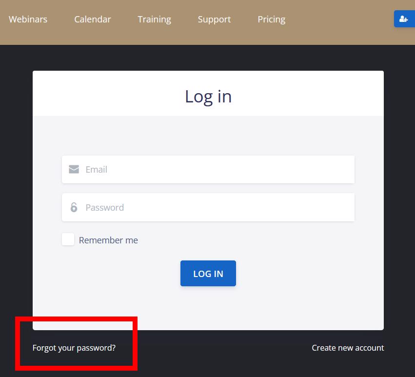 On the Login page you can click a link saying "Forgot your password?". Enter your email address and click 'Send'. After a short while, you will receive an email with a link that will take you to a page where you can set a new password.