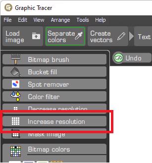 2. Press the Increase resolution button. Now you can convert the image to vectors and get a better result. You should not click the increase resolution button more than twice for an image.